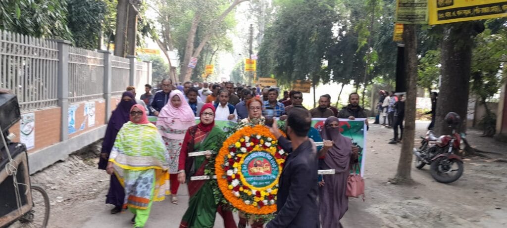 কুষ্টিয়া জেলা বিএনপির যুগ্ম সম্পাদক মিরাজুল ইসলাম রিন্টু,মহিউদ্দিন চৌধুরী মিলন ও সাংগঠনিক সম্পাদক এ্যাড, শামিম-ঊল হাসান অপু ও সহ-আইন বিষয়ক সম্পাদক এ্যাড, খাদেমুল ইসলামের নেতৃত্বে এক বর্ণাঢ্য র্যালি নিয়ে শহরের বিভিন্ন সড়ক প্রদক্ষিণ করে জেলা কেন্দ্রীয় স্মৃতিসৌধে পুষ্পমাল্য অর্পণ করেন দলটির সর্বস্তরের নেতাকর্মী ও সমর্থকরা।
