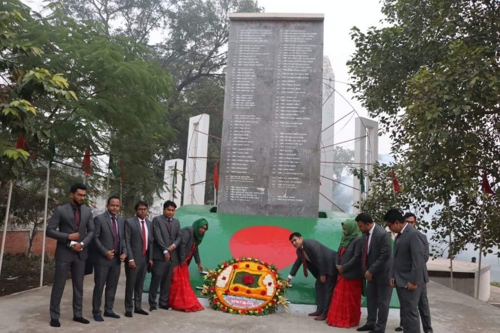 একইসাথে জাতির পিতা বঙ্গবন্ধু শেখ মুজিবুর রহমান এর ভাস্কর্যে পুষ্পস্তবক অর্পণ শেষে বিশেষ দোয়া অনুষ্ঠিত হয়। পরে আনুষ্ঠানিকভাবে পতাকা উত্তোলন ও সালম গ্রহণ করা হয়।