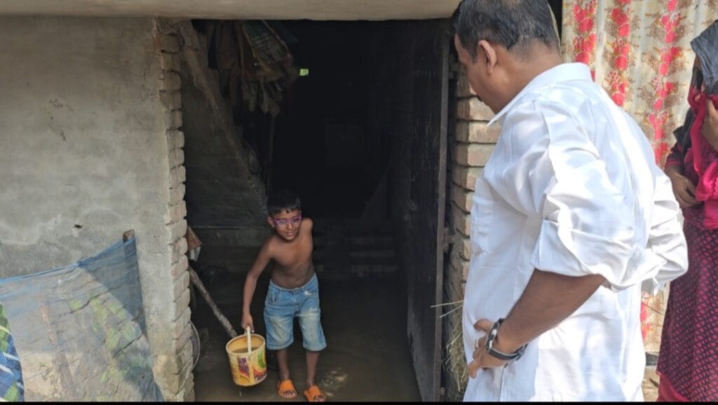 এদিকে ঘটনাস্থলে গিয়ে দেখা যায়, একটি শিশু তার ঘরের ভেতরে জমে থাকা পানি সেচে বাইরে ফেলছে—যা এলাকাবাসীর দুর্ভোগের বাস্তব চিত্রকে স্পষ্টভাবে তুলে ধরে।