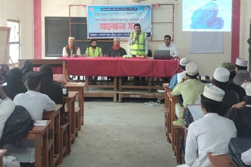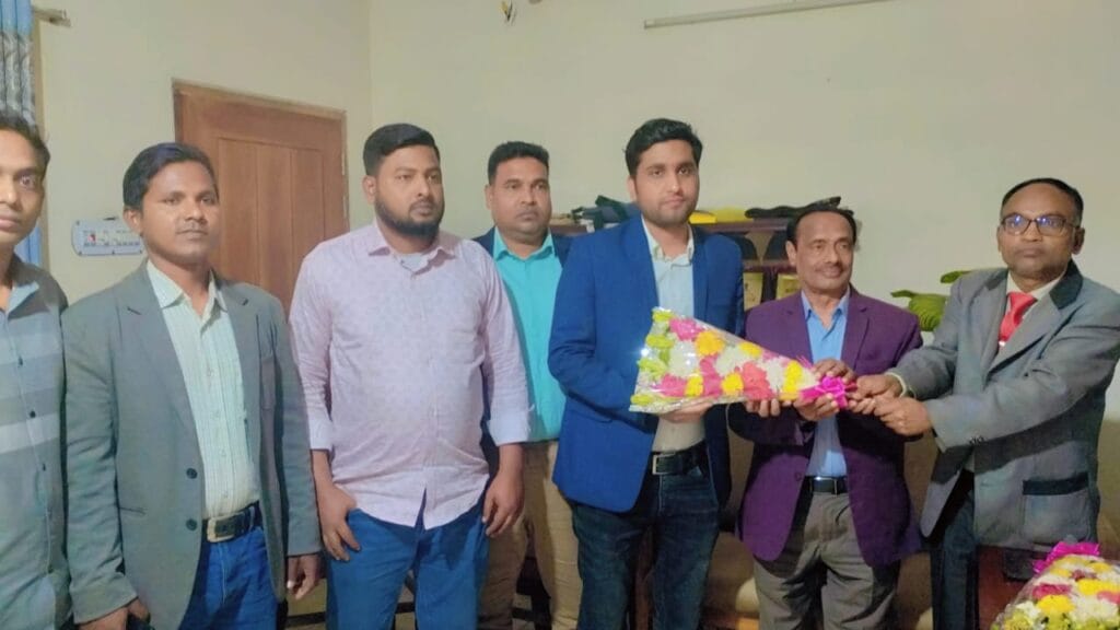 শেখপাড়া রাহাতন নেছা গালর্স স্কুল এন্ড কলেজের এডহক কমিটি নবনিযুক্ত সভাপতি সাজ্জাদ হোসাইনকে সংবর্ধনা প্রদান করা হচ্ছে