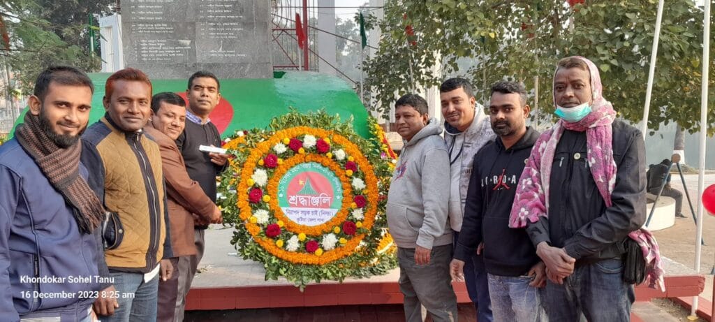 নিরাপদ সড়ক চাই (নিসচা) কুষ্টিয়া জেলা শাখা প্রতি বছরের ন্যায় এবারও যথাযোগ্য মর্যাদা ও গভীর শ্রদ্ধার সাথে মহান বিজয় দিবস উদযাপন করেছেন। এ উপলক্ষ্যে সংগঠনটির নেতাকর্মীরা বর্ণাঢ্য র্যালি ও কুষ্টিয়া জেলা কেন্দ্রীয় স্মৃতিসৌধে যথাযোগ্য মর্যাদায় পুষ্প স্তবক অর্পণ করেন। এসময় তাঁরা শহিদদের আত্মার মাগফিরাত কামনা করেন।