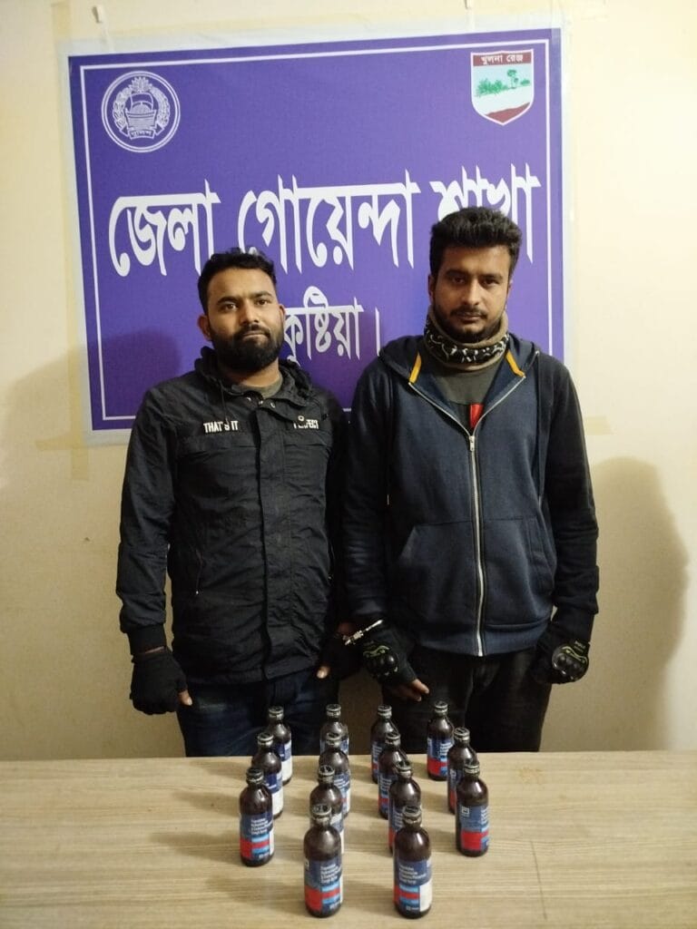 পুলিশ সূত্রে জানা যায়, কুষ্টিয়া গোয়েন্দা পুলিশের উপ-পরিদর্শক মুরাদুল ইসলামের নেতৃত্বে গোপন সংবাদের ভিত্তিতে ডিবি পুলিশের এএসআই কামরুল ইসলাম, এসআই আব্দুল মতিন, সঙ্গীয় ফোর্স মঙ্গলবাড়ীয়া বাজারে মেসার্স শোভন এন্টারপ্রাইজ এর সামনে থেকে মাদকবিরোধী অভিযান পরিচালনা করে দুই মাদক চোরাকারবারিকে নিষিদ্ধ মাদক ভারতীয় ফেন্সিডিলসহ হাতেনাতে আটক করে।