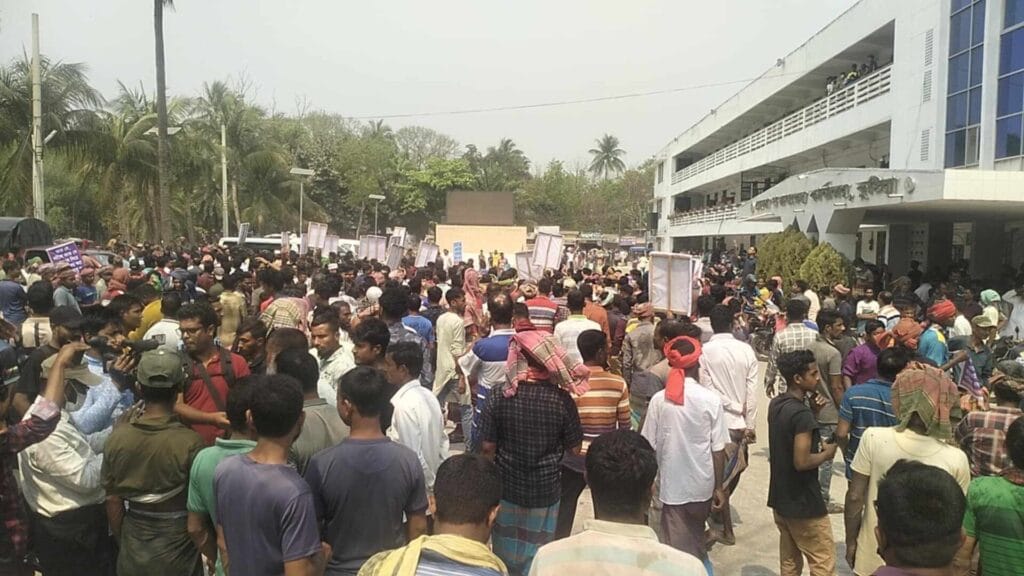 “প্রসঙ্গে কুষ্টিয়ার জেলা প্রশাসক তৌফিকুর রহমান বলেন, আসলে যে কেউ যেকোনো দাবি নিয়ে আন্দোলন করতে পারে। তবে যেটা অবৈধ, সেটা অবৈধই। অবৈধ যেকোনো বিষয়ে আমরা আইনগত পদক্ষেপ গ্রহণ করছি। এ ধরনের আন্দোলন প্রশাসনের উপর চাপ বাড়াচ্ছে কিনা এমন প্রশ্নের জবাবে তিনি বলেন, একটু চাপতো বাড়েই।