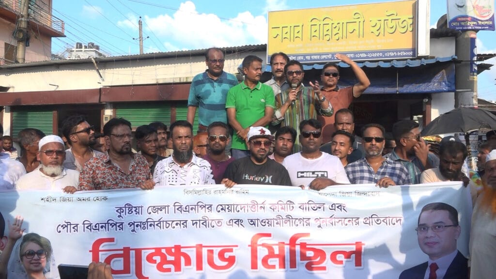 ত্যাগী-পরীক্ষিত বিএনপি ও অঙ্গসংগঠনের নেতাকর্মীদের ব্যানারে কুষ্টিয়া জেলা বিএনপির মেয়াদোত্তীর্ণ কমিটি বাতিল ও শহর বিএনপির পুনঃনির্বাচনের দাবিতে বিক্ষোভ মিছিল অনুষ্ঠিত হয়েছে।