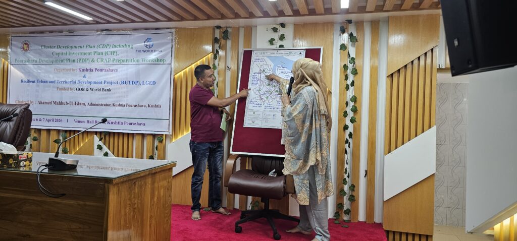 কুষ্টিয়া পৌরসভার সার্বিক উন্নয়ন ও ভবিষ্যৎ পরিকল্পনা প্রণয়নের লক্ষ্যে ক্লাস্টার উন্নয়ন পরিকল্পনা (সিডিপি), ক্যাপিট্যাল ইনভেস্টমেন্ট প্ল্যান (সিআইপি) এবং ক্লাইমেট রেজিলিয়েন্ট অ্যাকশন প্ল্যান শীর্ষক দিনব্যাপী কর্মশালা অনুষ্ঠিত হয়েছে।