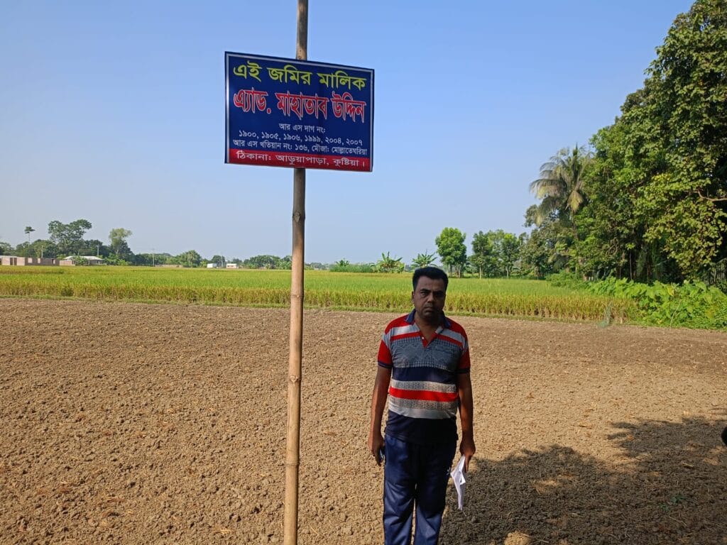 বর্তমানে এই জমি মৃত এ্যাডভোকেট মাহাতাব উদ্দিন মণ্ডলের ওয়ারেশদের নামেই নাম পত্তন রয়েছে এবং ওয়ারেশগন নিয়মিত খাজনা পরিষদ করে আসছে।