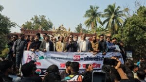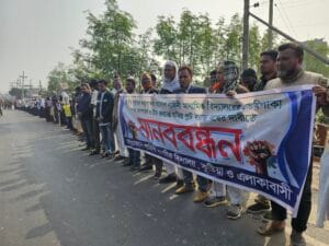 স্কুল ভবন ভেঙে নিতে নোটিশ: শিক্ষক-শিক্ষার্থী ও এলাকাবাসীর মানববন্ধন