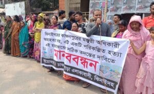 গৃহবধূর মৃত্যুর সঠিক তদন্তের দাবিতে মানববন্ধন